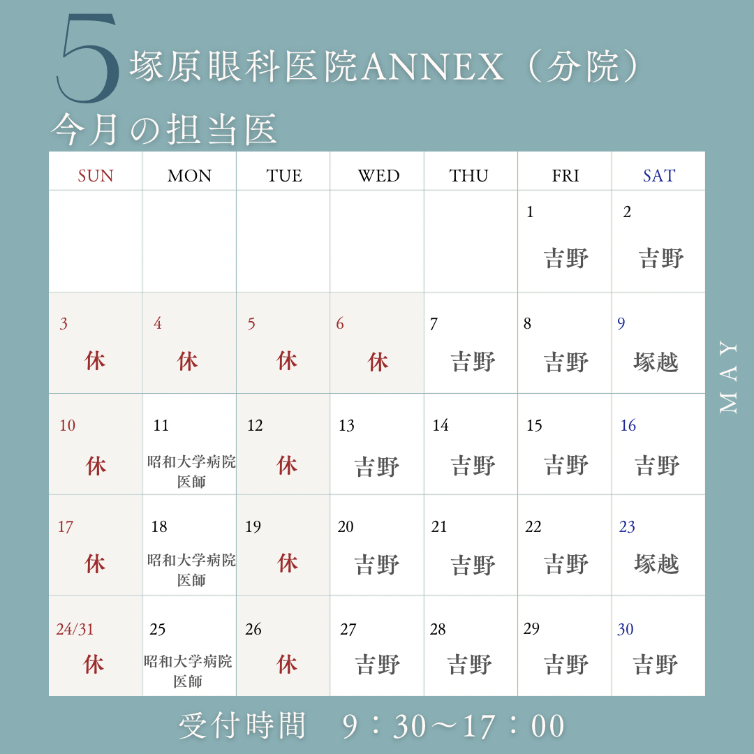 5月の診療案内(本院/ANNEX)